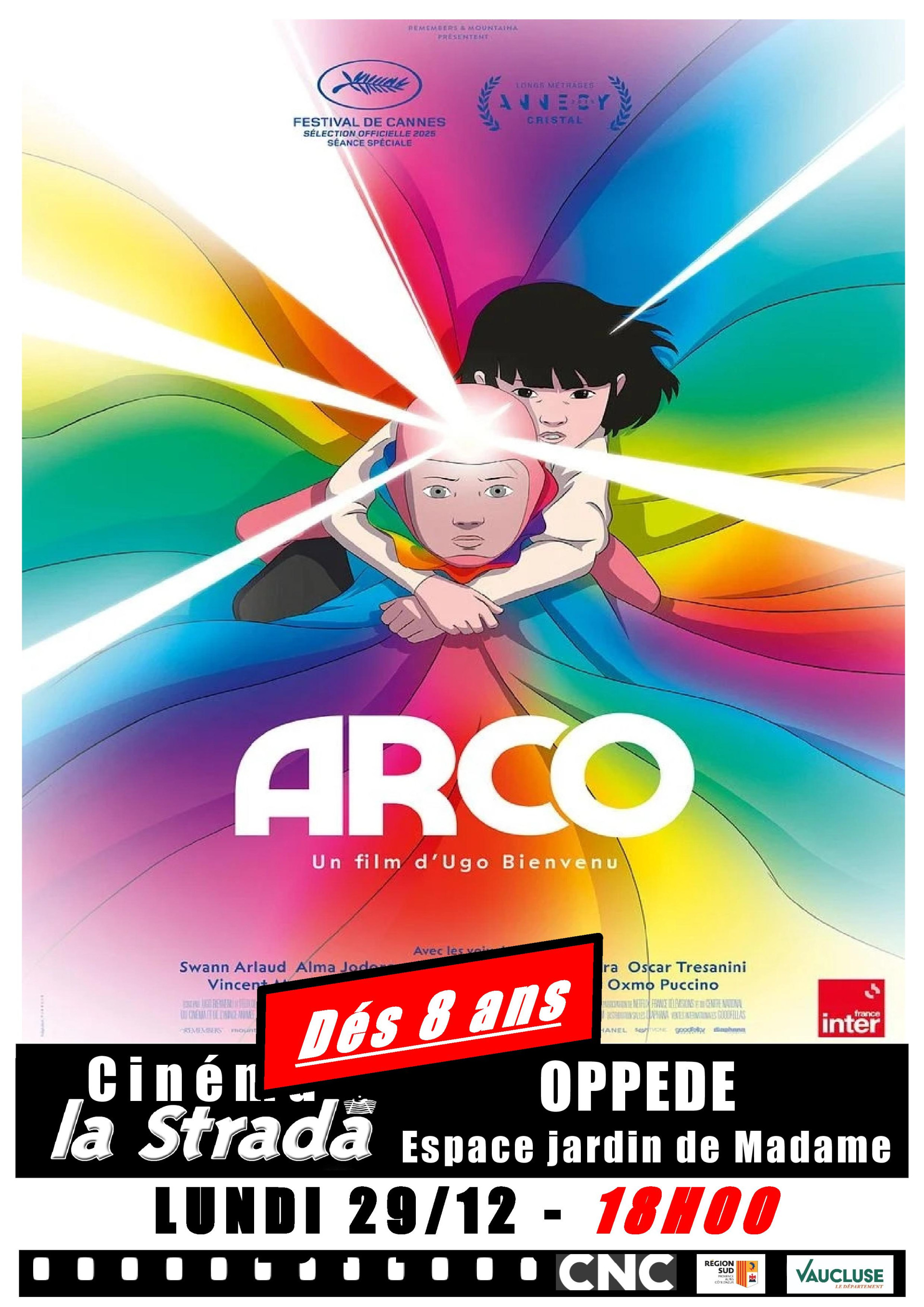 De Ugo Bienvenu avec Swann Arlaud, Alma Jodorowsky, Margot Ringard Oldra Tout Public En 2075, une petite fille de 10 ans, Iris, voit un mystérieux garçon vêtu d'une combinaison arc-en-ciel tomber du ciel. C'est Arco. Il vient d'un futur lointain et idyllique où voyager dans le temps est possible. Iris le recueille et va l'aider par tous les moyens à rentrer chez lui. |