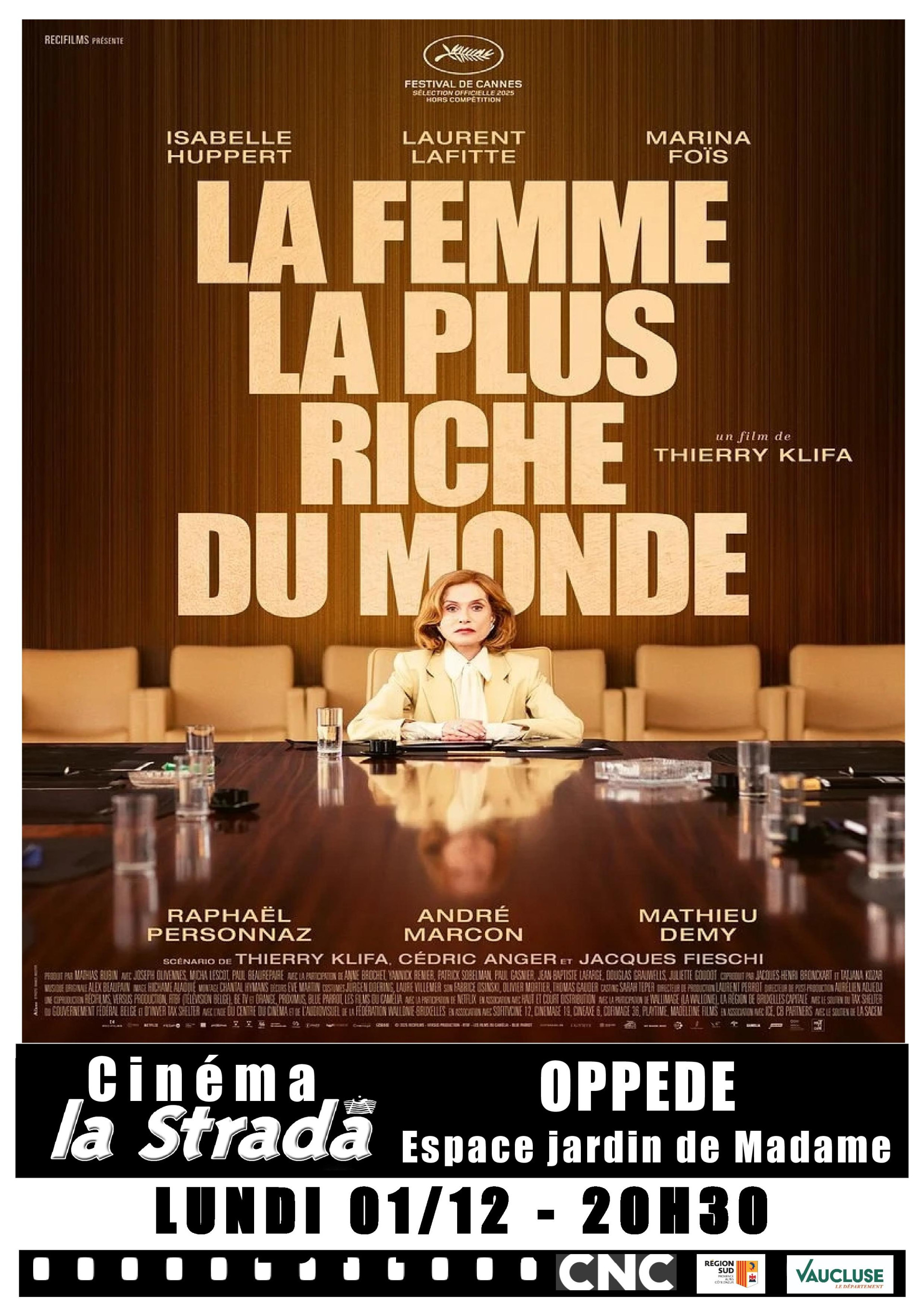 Comédie dramatique de Thierry Klifa, Cédric Anger avec Isabelle Huppert, Marina Foïs, Laurent Lafitte. Tout public La femme la plus riche du monde: sa beauté, son intelligence; son pouvoir. Un écrivain photographe: son ambition, son insolence, sa folie. Le coup de foudre qui emporte. Une héritière méfiante qui se bat pour être aimée. Un majordome aux aguets qui en sait plus qu'il ne dit. Des secrets de famille. Des donations astronomiques. Une guerre où tous les coups sont permis. |