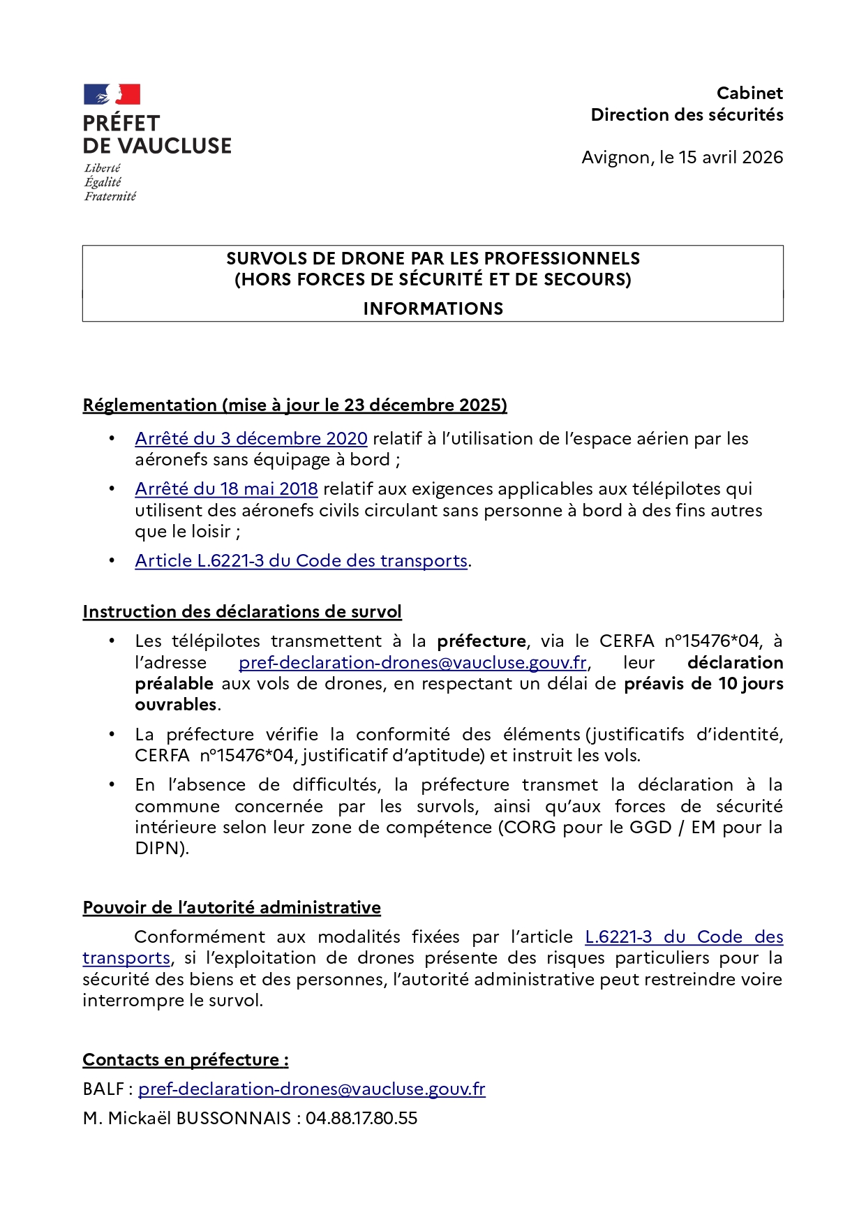 Information - Survol de drone par les professionnels
